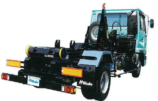 脱着車とは1台の車で、ダンプ車・深箱トラック・平ボディー車・パッカー車など、上物を乗せかえるだけで何役もの働きをする車で、ここ数年で産廃業、解体業、土木業、造園業、運送業、酪農業など各業種で活躍している車です。